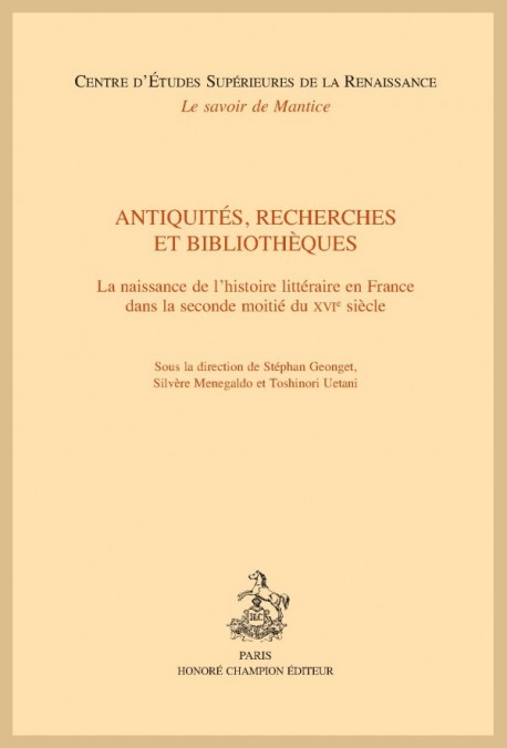 Après un demi-siècle de combat pour la langue française, la France du dernier quart du XVIe siècle voit émerger une conscience de sa littérature nationale. Ainsi s’élabore, en particulier avec les travaux de Claude Fauchet, d’Étienne Pasquier, de La Croix du Maine et de Du Verdier, un discours sur la littérature française, ses origines, son histoire et ses spécificités ; de Jean de Meun à Pierre de Ronsard, des auteurs tendent à devenir constitutifs d’un patrimoine littéraire proprement français, méritant d’être exploré, catalogué, décrit, analysé et mis à l’honneur par ces pionniers de l’histoire littéraire qui mettent à contribution sources manuscrites ou imprimées, réseaux de solidarité et modèles érudits, en France et hors de France, afin d’ériger les premiers monuments à la gloire du génie poétique français.