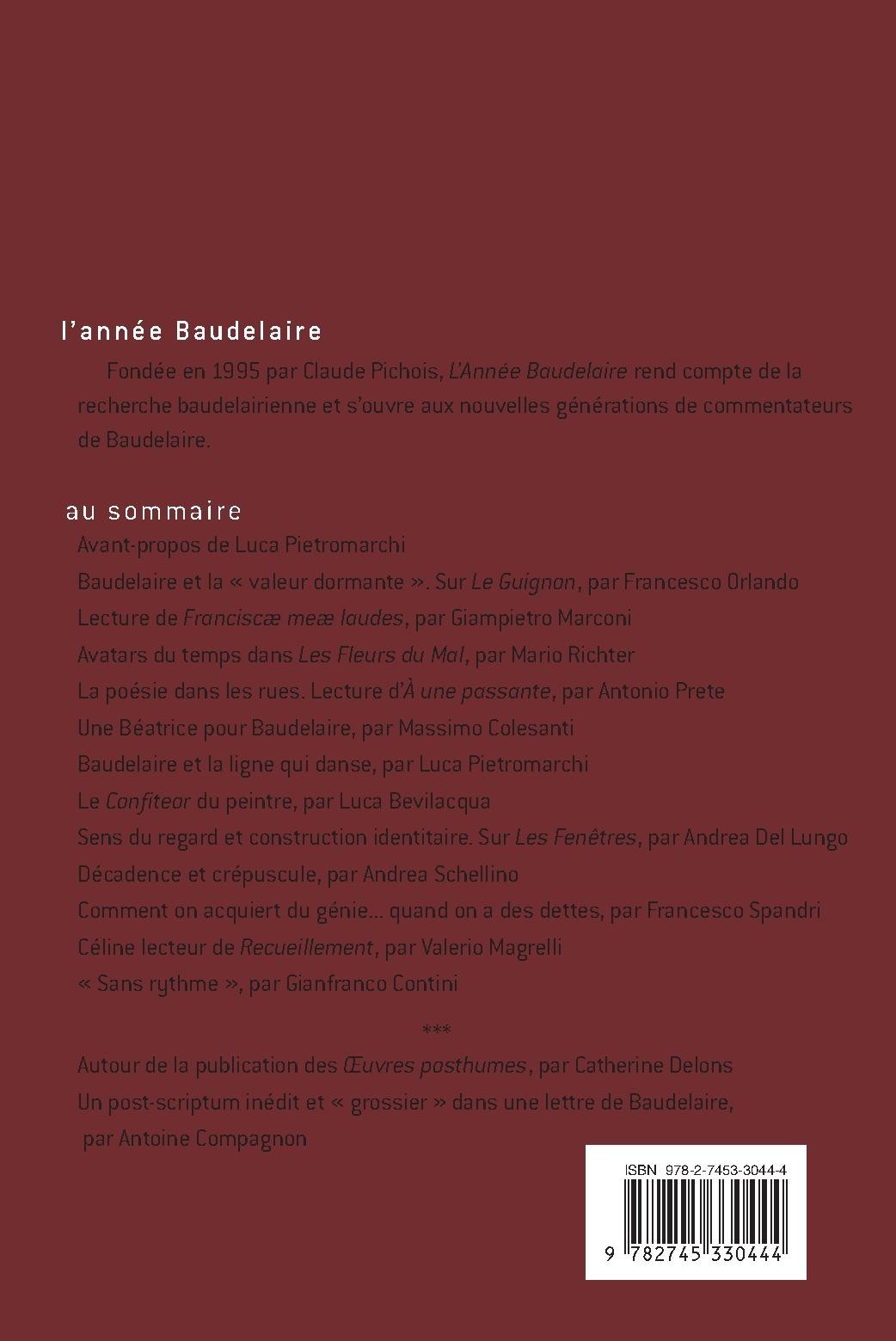 Fondée en 1995 par Claude Pichois, L’Année Baudelaire rend compte de la recherche baudelairienne et s’ouvre aux nouvelles générations de commentateurs de Baudelaire.