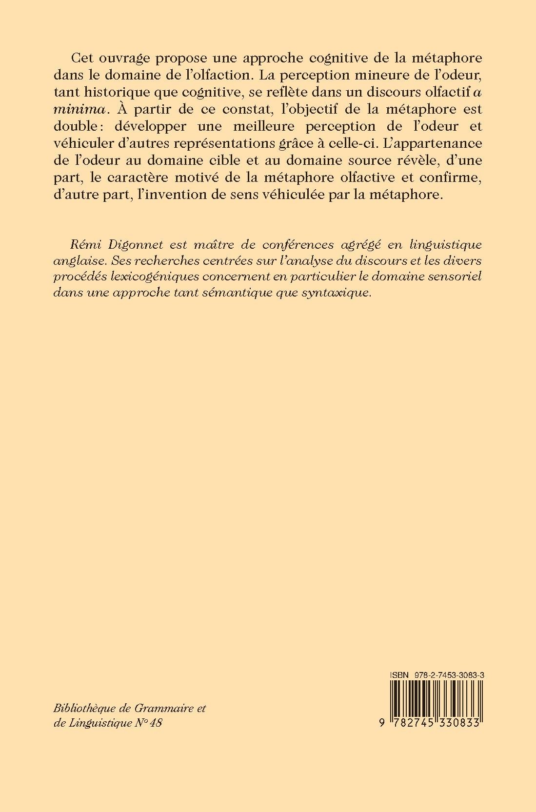 Cet ouvrage propose une approche cognitive de la métaphore dans le domaine de l’olfaction. La perception mineure de l’odeur, tant historique que cognitive, se reflète dans un discours olfactif a minima. À partir de ce constat, l’objectif de la métaphore est double : développer une meilleure perception de l’odeur et véhiculer d’autres représentations grâce à celle-ci. L’appartenance de l’odeur au domaine cible et au domaine source révèle, d’une part, le caractère motivé de la métaphore olfactive et confirme, d’autre part, l’invention de sens véhiculée par la métaphore.