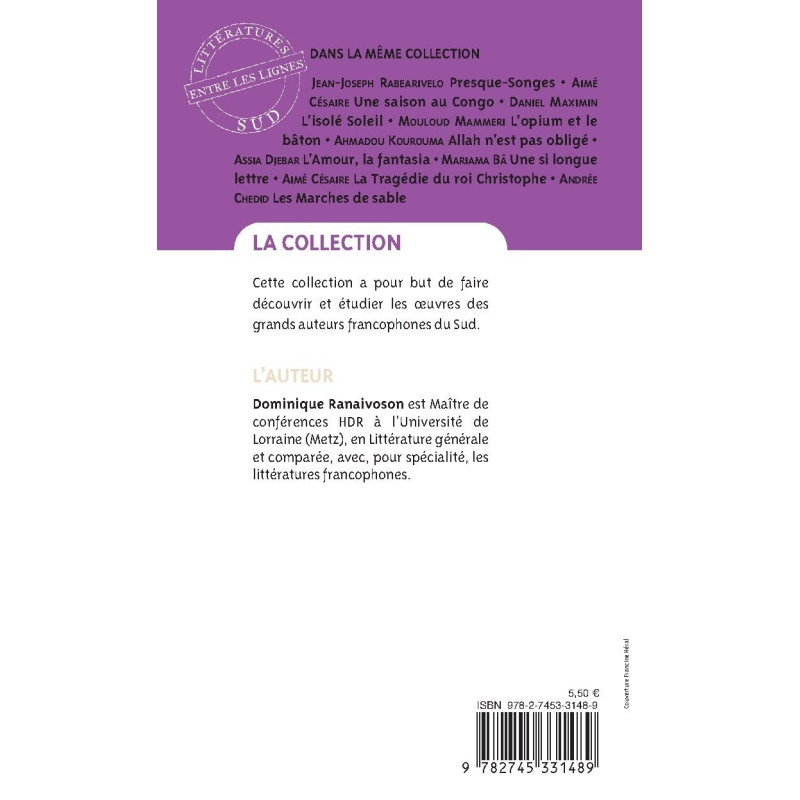 Dominique Ranaivoson est Maître de conférences HDR à l’Université de Lorraine (Metz), en Littérature générale et comparée, avec, pour spécialité, les littératures francophones.