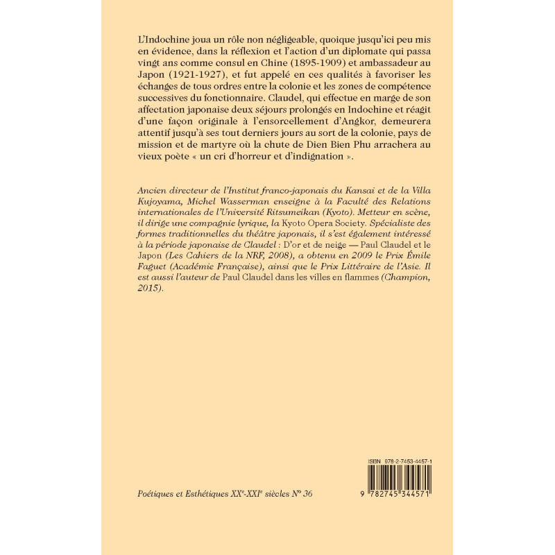 L’Indochine joua un rôle non négligeable, quoique jusqu’ici peu mis en évidence, dans la réflexion et l’action d’un diplomate qui passa vingt ans comme consul en Chine (1895-1909) et ambassadeur au Japon (1921-1927), et fut appelé en ces qualités à favoriser les échanges de tous ordres entre la colonie et les zones de compétence successives du fonctionnaire. Claudel, qui effectue en marge de son affectation japonaise deux séjours prolongés en Indochine et réagit d’une façon originale à l’ensorcellement d’Angkor, demeurera attentif jusqu’à ses tout derniers jours au sort de la colonie, pays de mission et de martyre où la chute de Dien Bien Phu arrachera au vieux poète « un cri d’horreur et d’indignation ».