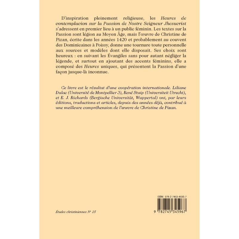 Ce livre est le résultat d’une coopération internationale. Liliane Dulac (Université de Montpellier 3), René Stuip (Universiteit Utrecht), et E. J. Richards (Bergische Universität, Wuppertal) ont, par leurs éditions, traductions et articles, depuis des années déjà, contribué à une meilleure compréhension de l' œuvre de Christine de Pizan.