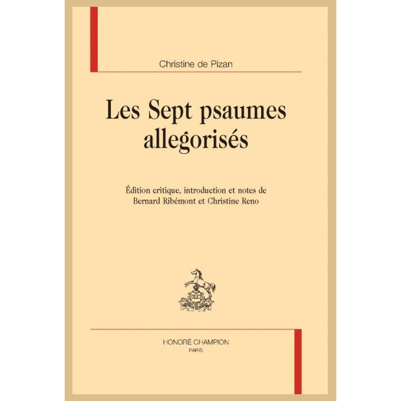 Les Sept psaumes allegorisés, oeuvre de la maturité de Christine, peuvent être situés dans une perspective de vulgarisation du savoir : enseignement et dévotion, en français, à partir des Psaumes, mais en intégrant à la prière un ensemble de données exemplaires et pédagogiques, en particulier politiques, en rapport direct avec l’actualité du royaume et de la Chrétienté. C’est donc une oeuvre de plus qui vient compléter le vaste champ d’investigation de la femme écrivain au service d’une parole qui vise à éduquer. Ce texte avait été édité en 1965 par Ruth Ringland Rains, qui n’avait pas vu tous les manuscrits ; cette édition était d’ailleurs devenue presque introuvable. Il était donc nécessaire de fournir une nouvelle édition critique de ce texte écrit dans le contexte du Grand Schisme. La présente édition est basée sur quatre des cinq manuscrits connus des Sept psaumes allegorisés de Christine de Pizan, le cinquième, de toute évidence en mains privées, restant toujours inaccessible.