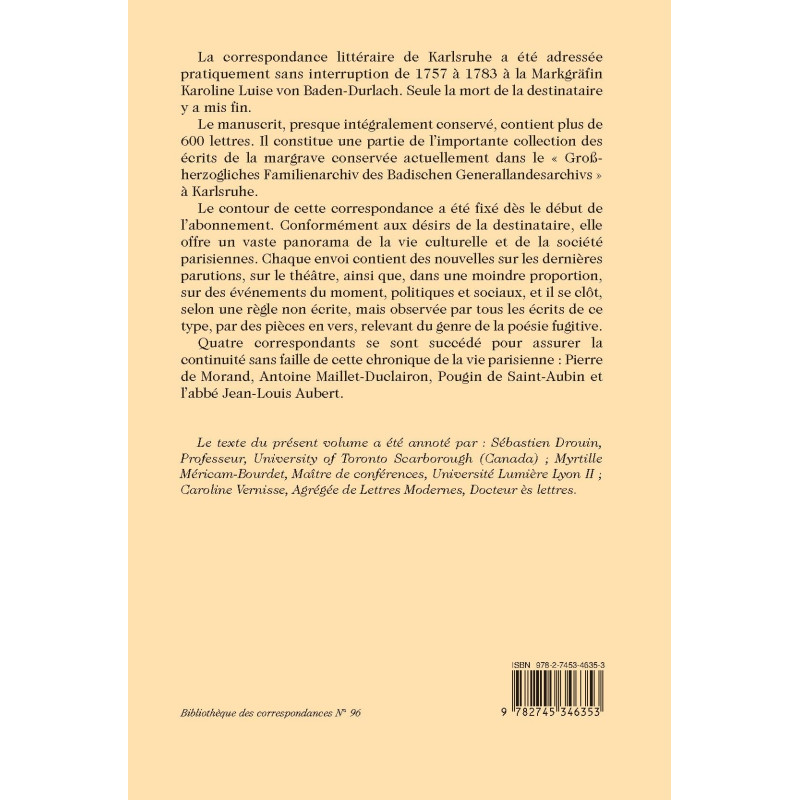 | Collection | BIBLIOTHEQUE DES CORRESPONDANCES, MEMOIRES ET JOURNAUX |