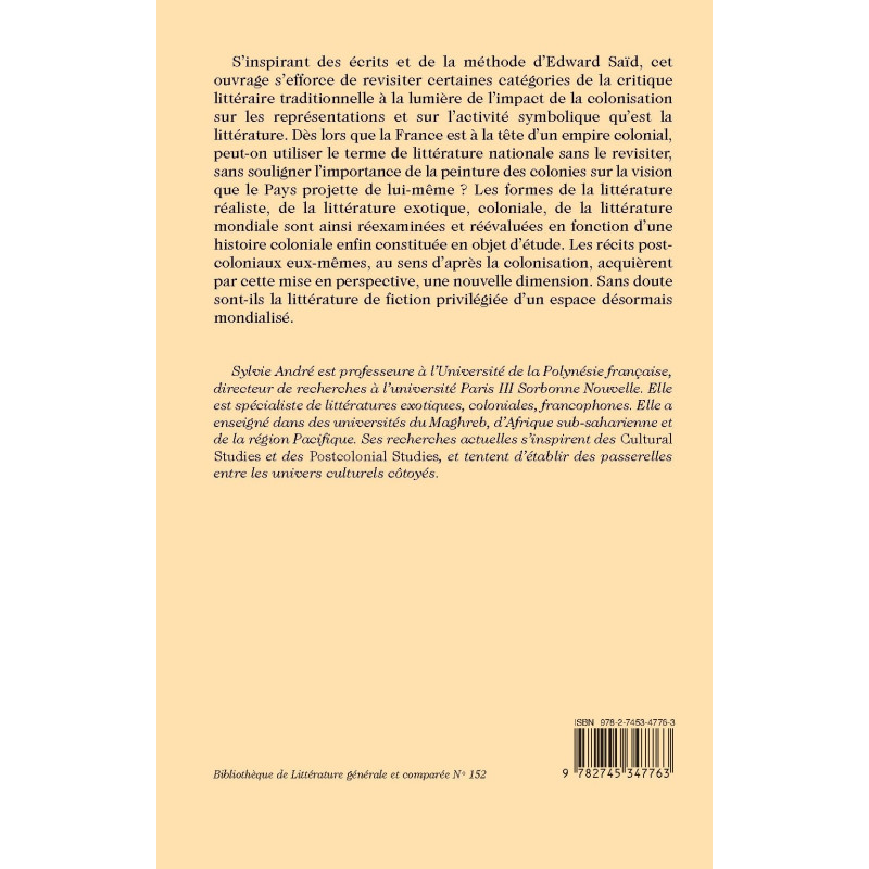 S’inspirant des écrits et de la méthode d’Edward Saïd, cet ouvrage s’efforce de revisiter certaines catégories de la critique littéraire traditionnelle à la lumière de l’impact de la colonisation sur les représentations et sur l’activité symbolique qu’est la littérature. Dès lors que la France est à la tête d’un empire colonial, peut-on utiliser le terme de littérature nationale sans le revisiter, sans souligner l’importance de la peinture des colonies sur la vision que le Pays projette de lui-même ? Les formes de la littérature réaliste, de la littérature exotique, coloniale, de la littérature mondiale sont ainsi réexaminées et réévaluées en fonction d’une histoire coloniale enfin constituée en objet d’étude. Les récits postcoloniaux eux-mêmes, au sens d’après la colonisation, acquièrent par cette mise en perspective, une nouvelle dimension. Sans doute sont-ils la littérature de fiction privilégiée d’un espace désormais mondialisé.