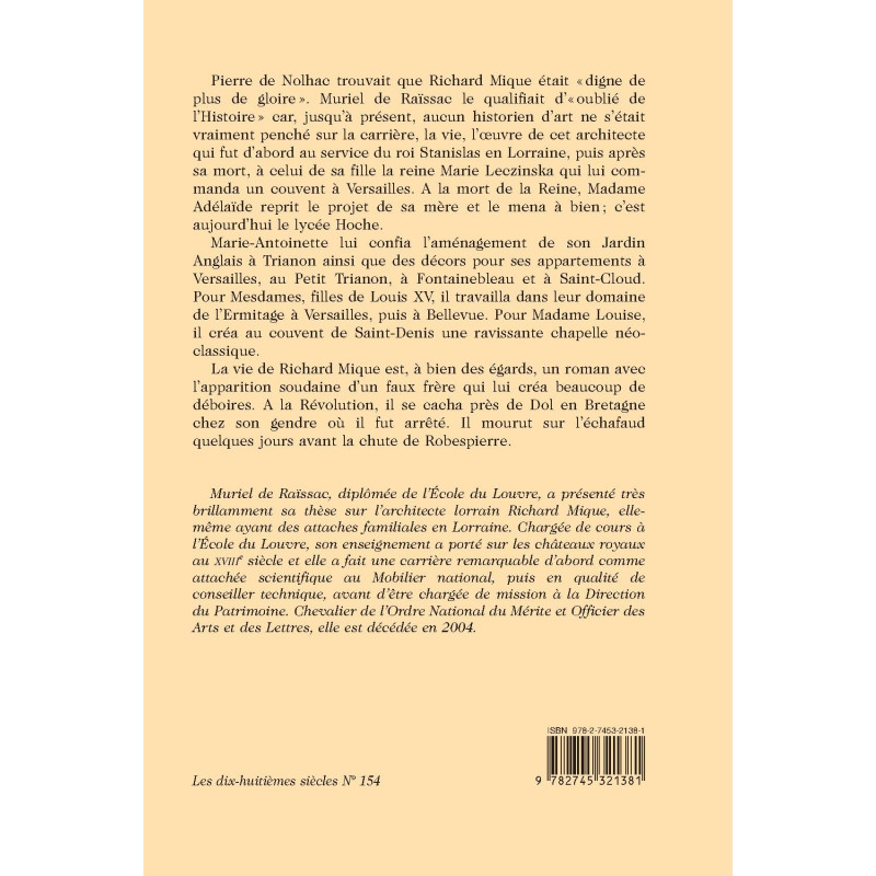 RICHARD MIQUE ARCHITECTE DU ROI DE POLOGNE STANISLAS 1ER, DE MESDAMES ET DE MARIE-ANTOINETTE