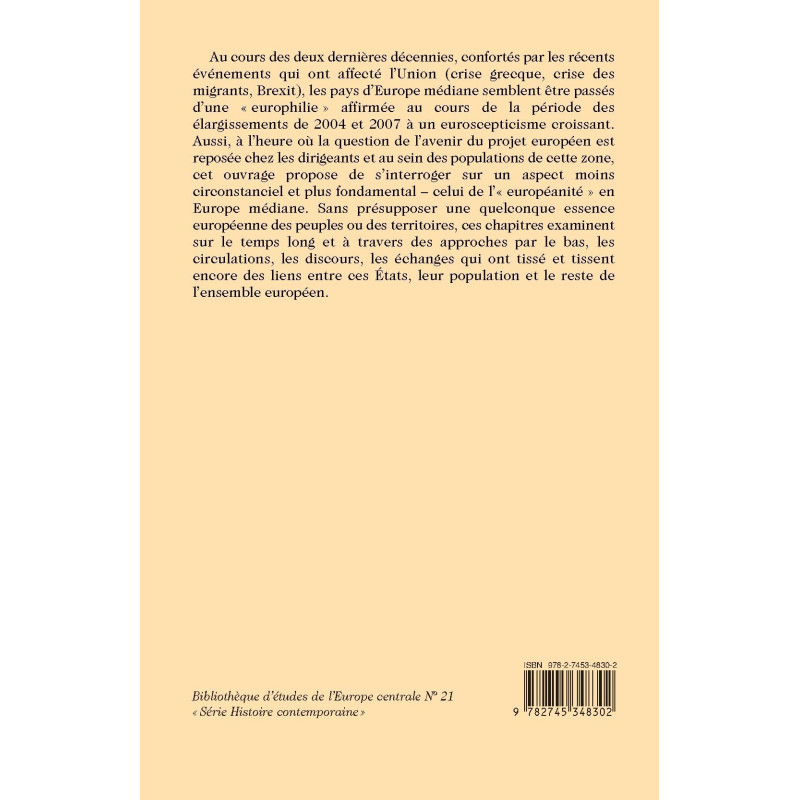 Au cours des deux dernières décennies, confortés par les récents événements qui ont affecté l’Union (crise grecque, crise des migrants, Brexit), les pays d’Europe médiane semblent être passés d’une « europhilie » affirmée au cours de la période des élargissements de 2004 et 2007 à un euroscepticisme croissant. Aussi, à l’heure où la question de l’avenir du projet européen est reposée chez les dirigeants et au sein des populations de cette zone, cet ouvrage propose de s’interroger sur un aspect moins circonstanciel et plus fondamental – celui de l’« européanité » en Europe médiane. Sans présupposer une quelconque essence européenne des peuples ou des territoires, ces chapitres examinent sur le temps long et à travers des approches par le bas, les circulations, les discours, les échanges qui ont tissé et tissent encore des liens entre ces États, leur population et le reste de l’ensemble européen.