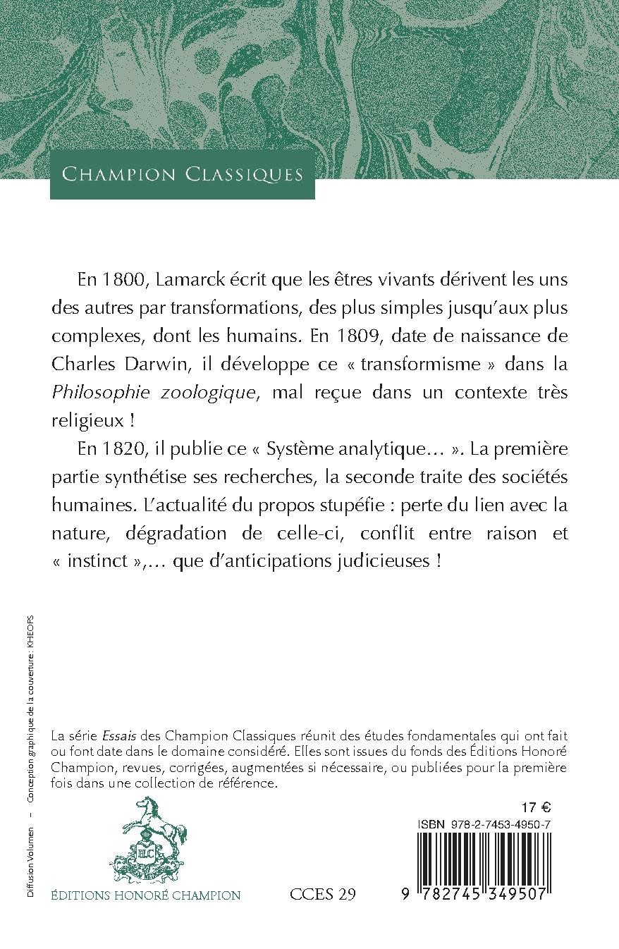 En 1820, il publie ce « Système analytique… ». La première partie synthétise ses recherches, la seconde traite des sociétés humaines. L’actualité du propos stupéfie : perte du lien avec la nature, dégradation de celle-ci, conflit entre raison et « instinct »,… que d’anticipations judicieuses !