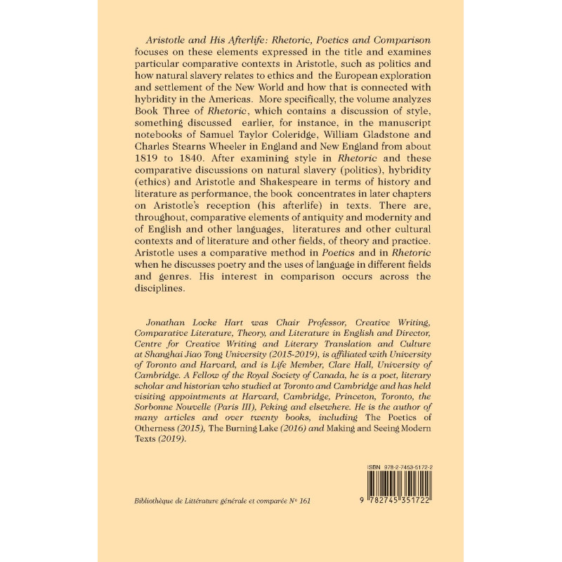 Aristotle and His Afterlife: Rhetoric, Poetics and Comparison focuses on these elements expressed in the title and examines particular comparative contexts in Aristotle, such as politics and how natural slavery relates to ethics and the European exploration and settlement of the New World and how that is connected with hybridity in the Americas. More specifically, the volume analyzes Book Three of Rhetoric, which contains a discussion of style, something discussed earlier, for instance, in the manuscript notebooks of Samuel Taylor Coleridge, William Gladstone and Charles Stearns Wheeler in England and New England from about 1819 to 1840. After examining style in Rhetoric and these comparative discussions on natural slavery (politics), hybridity (ethics) and Aristotle and Shakespeare in terms of history and literature as performance, the book concentrates in later chapters on Aristotle’s reception (his afterlife) in texts. There are, throughout, comparative elements of antiquity and modernity and of English and other languages, literatures and other cultural contexts and of literature and other fields, of theory and practice. Aristotle uses a comparative method in Poetics and in Rhetoric when he discusses poetry and the uses of language in different fields and genres. His interest in comparison occurs across the disciplines.