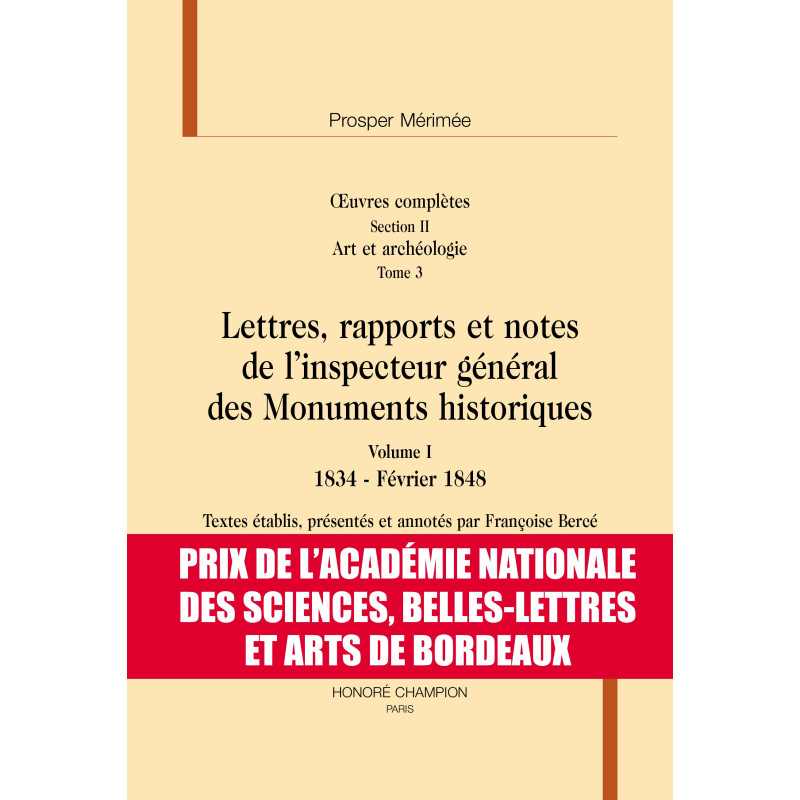 Si Prosper Mérimée est le célèbre auteur de Carmen, de Colomba et de la Vénus d’Ille, il fut aussi inspecteur général des Monuments historiques de 1834 à 1859 et peut être regardé comme le vrai fondateur de ce service. Il dut parcourir la France pour convaincre les villes et les départements de conserver et sauver les monuments de notre pays, ceux qui figuraient dans les ouvrages d’Alexandre de Laborde et du baron Taylor, et qu’entreprenait de décrire, dans les mêmes années, la Société française d’archéologie. Ce volume réunit l’ensemble des rapports et des lettres de sa main, ainsi que ses notes de tournée, adressés aux ministres, à la Commission des Monuments historiques et à ses présidents, mais aussi aux préfets et aux maires. La pertinence de ses jugements, sa verve, son style toujours vif, pittoresque, parfois acéré dans sa brièveté, dessinent l’autre face de ce Janus, écrivain et archéologue. En cela, cette publication ne sert pas seulement notre histoire « monumentale », elle éclaire le tempérament et le caractère d’un écrivain, qui se situe en marge du romantisme de son siècle.