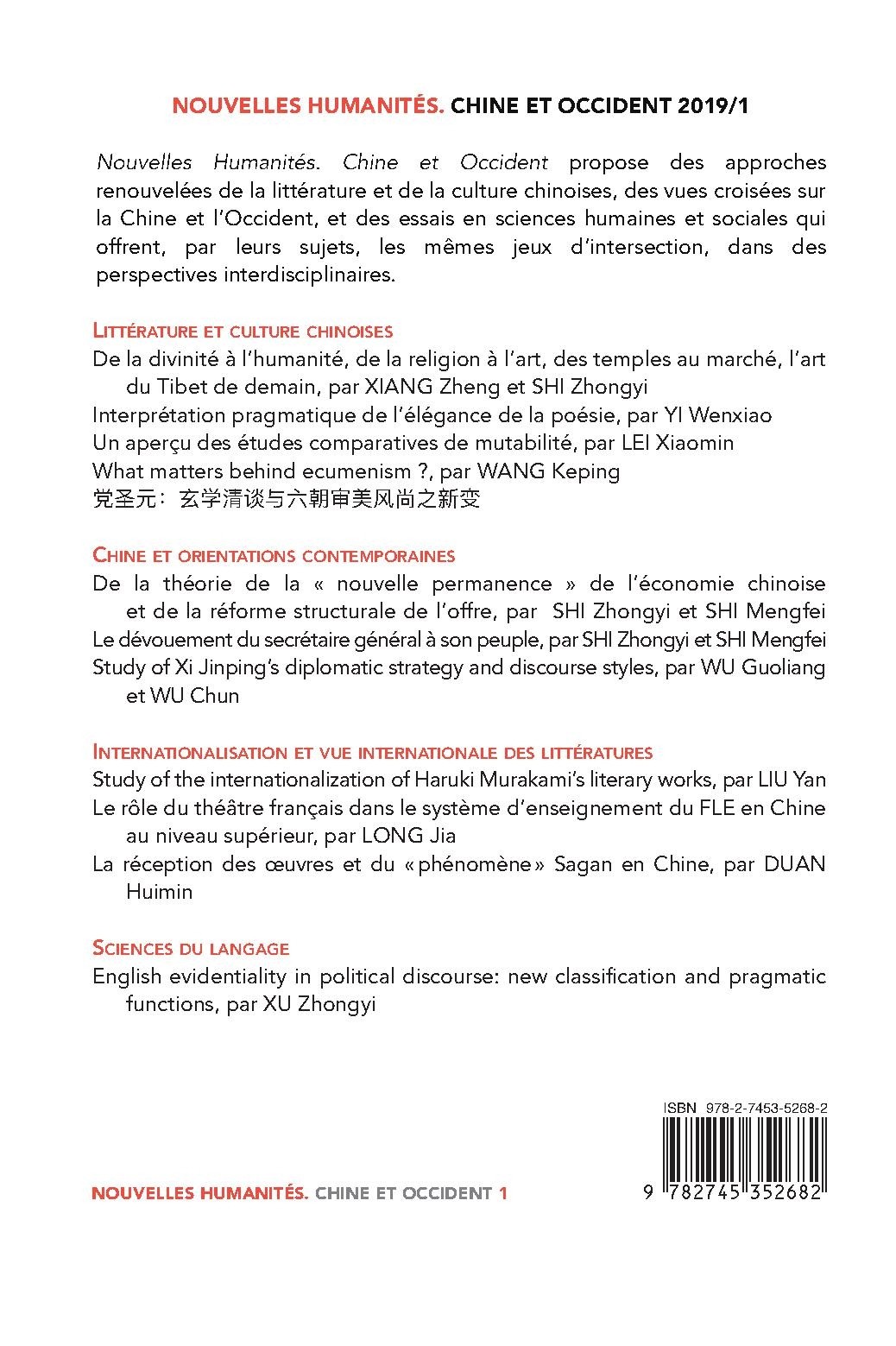| Collection | NOUVELLES HUMANITES CHINE OCCIDENT |