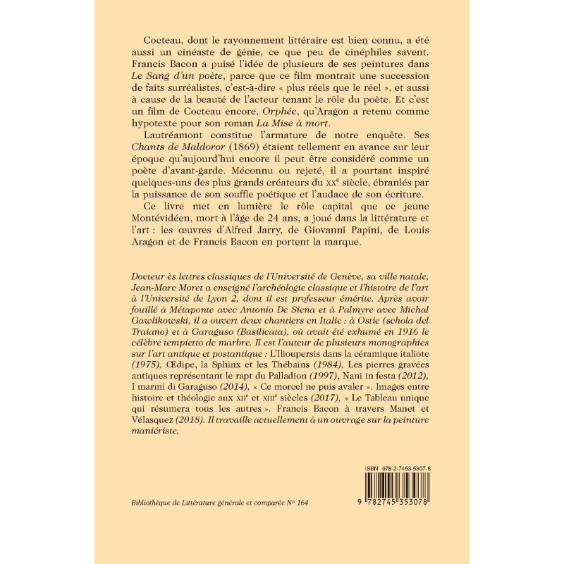 Lautréamont constitue l’armature de notre enquête. Ses Chants de Maldoror (1869) étaient tellement en avance sur leur époque qu’aujourd’hui encore il peut être considéré comme un poète d’avant-garde. Méconnu ou rejeté, il a pourtant inspiré quelques-uns des plus grands créateurs du XXe siècle, ébranlés par la puissance de son souffle poétique et l’audace de son écriture.