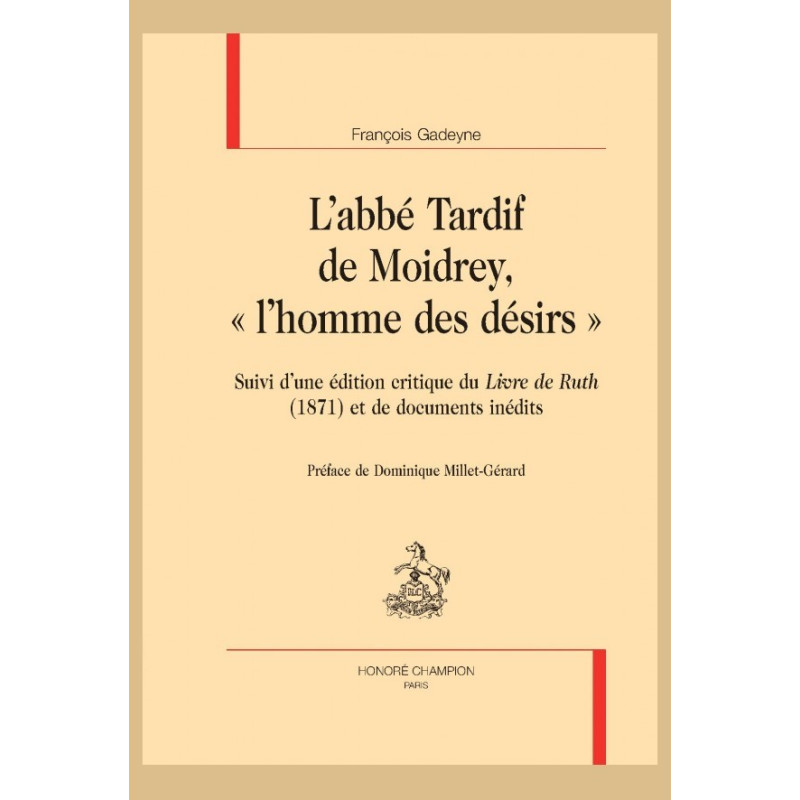 L’abbé Tardif de Moidrey (Metz, 1828-Corps, 1879) est l’homme qui apprit à Léon Bloy, à Ernest Hello et à quelques autres à déchiffrer le symbolisme des Écritures et les hiéroglyphes de l’Histoire. Sa mort étrange plongea ses amis et ses disciples dans un si terrible silence qu’ils se virent incapables d’écrire le récit de sa vie. Depuis cent quarante ans, toutes les tentatives ont été vouées à l’échec : « l’abbé de Moidrey voulait demeurer dans l’ombre », déplore son petit-neveu le poète Bernard de Moidrey. De fait, il préféra l’ombre du cloître et des confessionnaux à la lumière décevante des succès mondains. Le XXe siècle a su les larmes de Léon Bloy et a lu certaines des plus belles pages de l’écrivain directement inspirées de la parole de ce « prêtre supérieur ». Le seul livre qu’ait écrit l’abbé, Le Livre de Ruth, passé inaperçu en 1871, fut redécouvert et republié par Paul Claudel, qui le fit précéder d’une monumentale introduction. Mais l’homme restait absent et ses influences demeuraient obscures. Ce volume contient une biographie, une édition critique du Livre de Ruth et de l’ensemble des textes, publiés ou inédits, connus à ce jour, ainsi qu’un ensemble de documents.