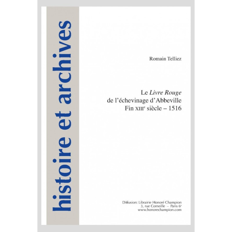 Le Livre Rouge de l’échevinage d’Abbeville est un des rares documents rescapés du bombardement incendiaire du 20 mai 1940 qui anéantit la quasi-totalité des Archives Communales antérieures à 1789. Abondamment utilisé par tous les historiens de la ville depuis le début du XIXe siècle et remarqué par Augustin Thierry qui en fit transcrire de longs extraits dans son Recueil des monuments inédits de l’histoire du tiers état, il n’avait jamais fait l’objet d’une édition complète.