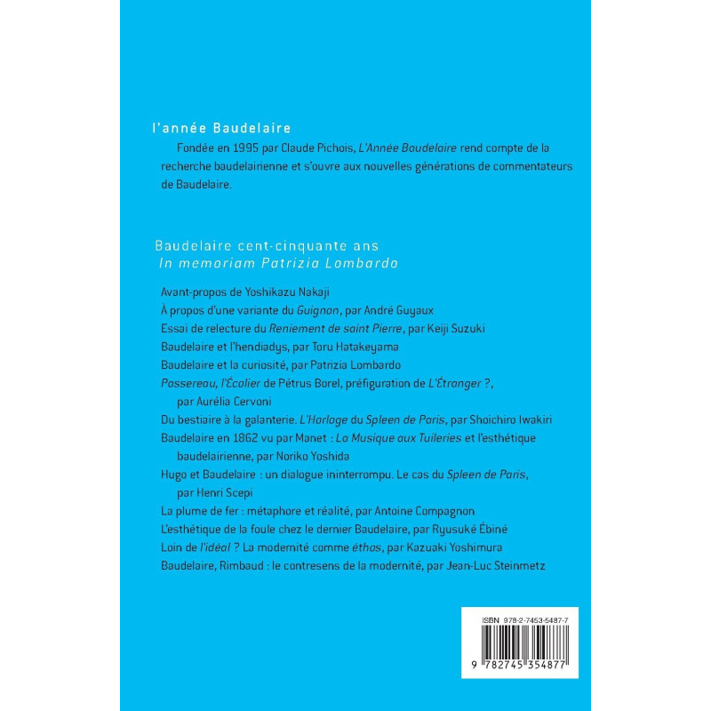 Baudelaire cent-cinquante ans. Actes du colloque de Tokyo du 28 mai 2017. Textes réunis par Yoshikazu Nakaji