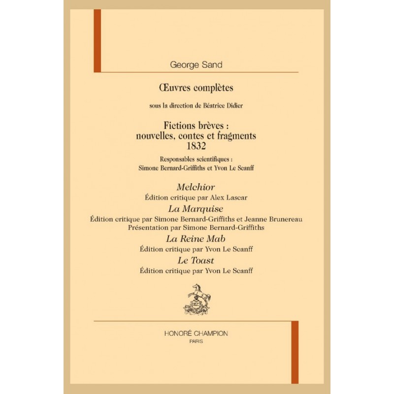 Simone Bernard-Griffiths, Professeur des Universités, a co-dirigé le Dictionnaire George Sand (Champion, 2 vols., 2015, et Champion Classiques « Références et Dictionnaires » n° 17, 1 vol., 2020) et publié Essais sur l’imaginaire de George Sand (Classiques Garnier, 2018).