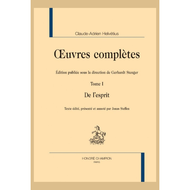 La nouveauté de cette première édition critique de L’Esprit est double. D’abord, elle présente le texte de la première émission de l’édition originale, avant la censure de l’abbé Barthélemy et les nombreuses interventions de Lefebvre de La Roche dans son édition de 1781, qui a longtemps fait autorité. Elle est ensuite la plus complète à ce jour: on y trouve les annotations de Voltaire, de Diderot et de Rousseau en marge de leur exemplaire, les rétractations de l’auteur et ses « Éclaircissements » ; enfin, l’appareil critique comporte les variantes et des notes explicatives aussi complètes que possible.