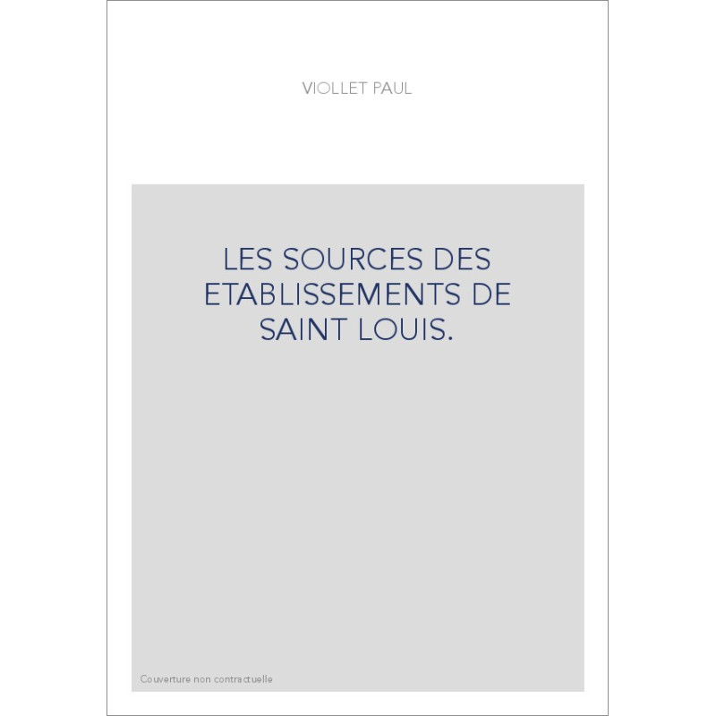 LES SOURCES DES ETABLISSEMENTS DE SAINT LOUIS.