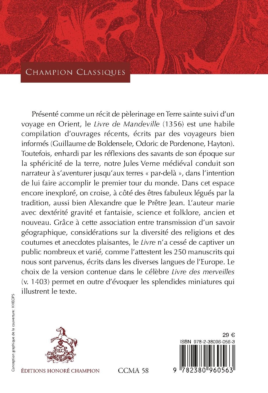 Présenté comme un récit de pèlerinage en Terre sainte suivi d’un voyage en Orient, le Livre de Mandeville (1356) est une habile compilation d’ouvrages récents, écrits par des voyageurs bien informés (Guillaume de Boldensele, Odoric de Pordenone, Hayton). Toutefois, enhardi par les réflexions des savants de son époque sur la sphéricité de la terre, notre Jules Verne médiéval conduit son narrateur à s’aventurer jusqu’aux terres « par-delà », dans l’intention de lui faire accomplir le premier tour du monde. Dans cet espace encore inexploré, on croise, à côté des êtres fabuleux légués par la tradition, aussi bien Alexandre que le Prêtre Jean. L’auteur marie avec dextérité gravité et fantaisie, science et folklore, ancien et nouveau. Grâce à cette association entre transmission d’un savoir géographique, considérations sur la diversité des religions et des coutumes et anecdotes plaisantes, le Livre n’a cessé de captiver un public nombreux et varié, comme l’attestent les 250 manuscrits qui nous sont parvenus, écrits dans les diverses langues de l’Europe. Le choix de la version contenue dans le célèbre Livre des merveilles (v. 1403) permet en outre d’évoquer les splendides miniatures qui illustrent le texte.