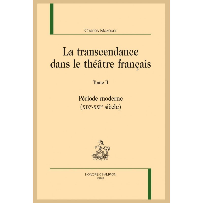 Les genres traditionnels, la tragédie et le mélodrame, ont toujours plus ou moins à voir avec la transcendance. La pensée métaphysique du drame romantique est loin d’être homogène : persistance d’une pensée religieuse, mais prise de distance plus avérée à l’égard du divin. Pour leur part, la fin du XIXe siècle et le début du XXe siècle opposent nettement d’un côté le naturalisme avec son refus du divin, et le théâtre bourgeois, généralement à ras de société ou avec une religiosité de surface, et de l’autre les aspirations spiritualistes plus ou moins religieuses et plus ou moins vagues du mouvement symboliste. Une quatrième étape est dédiée à l’impressionnant regain du théâtre chrétien et spécifiquement catholique, avec un Claudel qui impose et expose massivement sa foi en la transcendance divine, mais aussi avec une brochette de dramaturges moins géniaux, mais profondément croyants. La dernière étape, la plus proche de nous, montre un théâtre qui commence par discuter, contester ou nier toute transcendance, avant de la tourner en dérision, puis de l’éliminer complètement.
