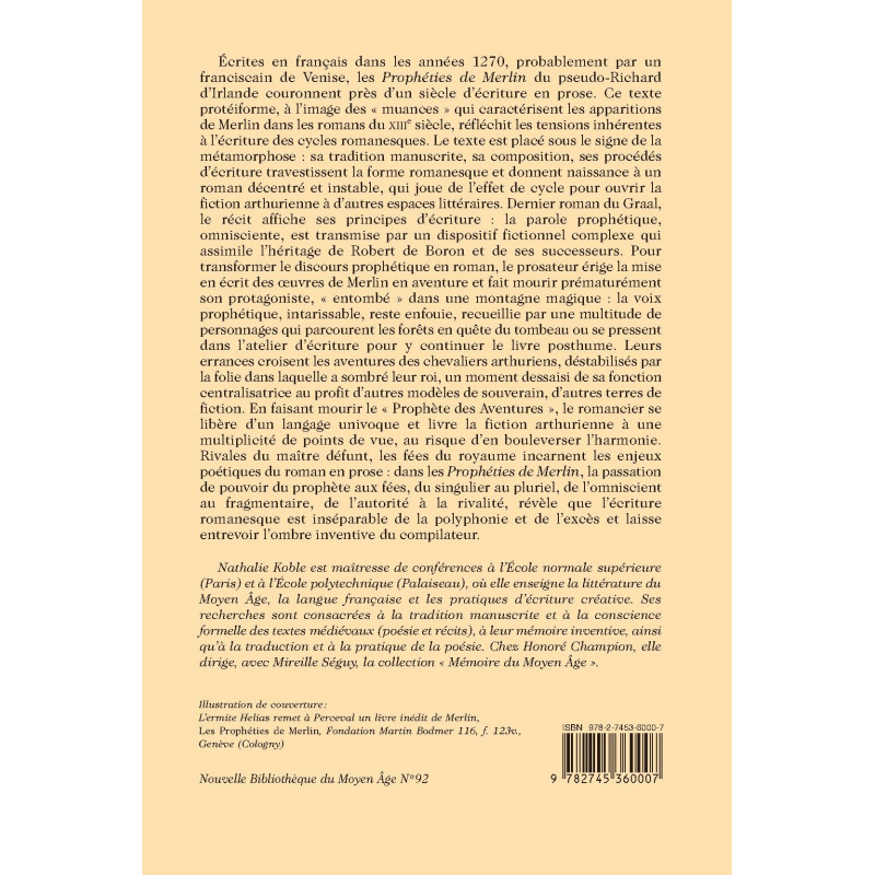Écrites en français dans les années 1270, probablement par un franciscain de Venise, les Prophéties de Merlin du pseudo-Richard d’Irlande couronnent près d’un siècle d’écriture en prose. Ce texte protéiforme, à l’image des « muances » qui caractérisent les apparitions de Merlin dans les romans du XIIIe siècle, réfléchit les tensions inhérentes à l’écriture des cycles romanesques. Le texte est placé sous le signe de la métamorphose : sa tradition manuscrite, sa composition, ses procédés d’écriture travestissent la forme romanesque et donnent naissance à un roman décentré et instable, qui joue de l’effet de cycle pour ouvrir la fiction arthurienne à d’autres espaces littéraires. Dernier roman du Graal, le récit affiche ses principes d’écriture : la parole prophétique, omnisciente, est transmise par un dispositif fictionnel complexe qui assimile l’héritage de Robert de Boron et de ses successeurs. Pour transformer le discours prophétique en roman, le prosateur érige la mise en écrit des œuvres de Merlin en aventure et fait mourir prématurément son protagoniste, « entombé » dans une montagne magique : la voix prophétique, intarissable, reste enfouie, recueillie par une multitude de personnages qui parcourent les forêts en quête du tombeau ou se pressent dans l’atelier d’écriture pour y continuer le livre posthume. Leurs errances croisent les aventures des chevaliers arthuriens, déstabilisés par la folie dans laquelle a sombré leur roi, un moment dessaisi de sa fonction centralisatrice au profit d’autres modèles de souverain, d’autres terres de fiction. En faisant mourir le « Prophète des Aventures », le romancier se libère d’un langage univoque et livre la fiction arthurienne à une multiplicité de points de vue, au risque d’en bouleverser l’harmonie. Rivales du maître défunt, les fées du royaume incarnent les enjeux poétiques du roman en prose : dans les Prophéties de Merlin, la passation de pouvoir du prophète aux fées, du singulier au pluriel, de l’omniscient au fragmentaire, de l’autorité à la rivalité, révèle que l’écriture romanesque est inséparable de la polyphonie et de l’excès et laisse entrevoir l’ombre inventive du compilateur.