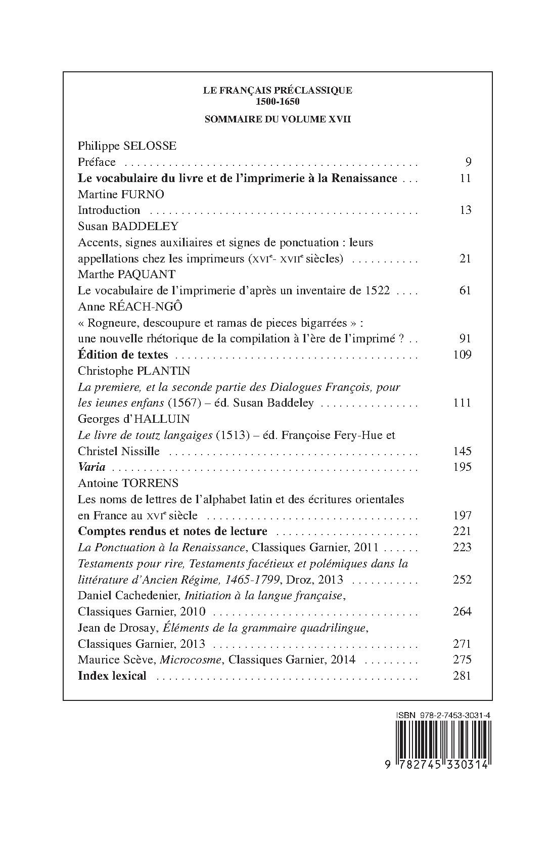 | Collection | LE FRANCAIS PRECLASSIQUE |