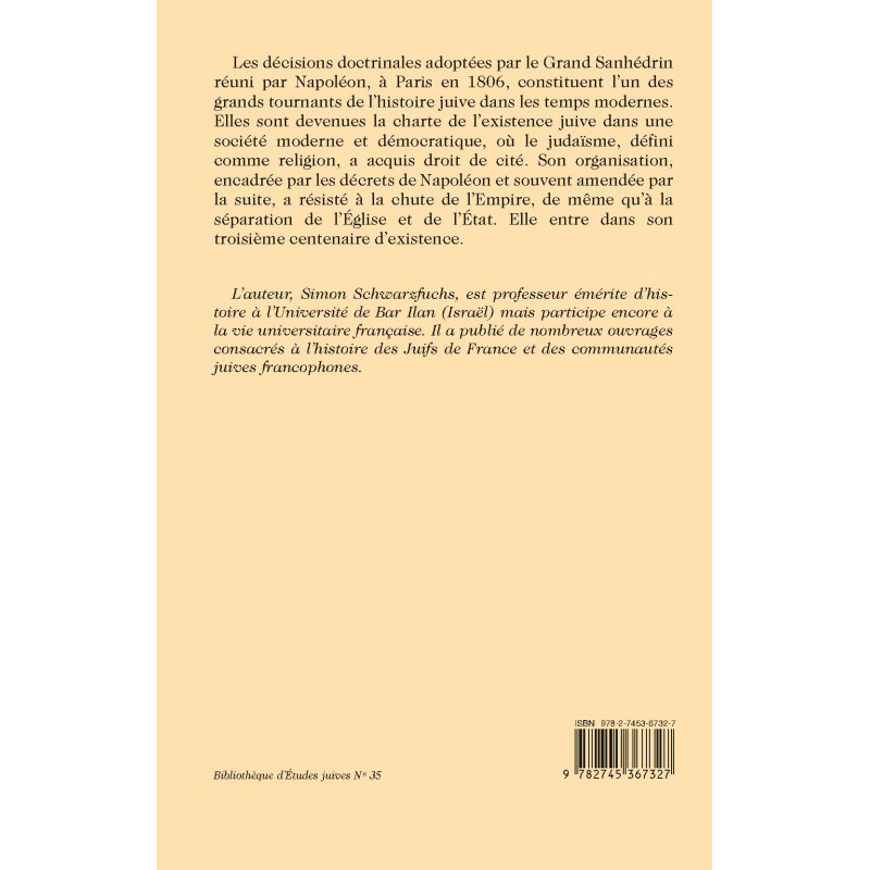Les décisions doctrinales adoptées par le Grand Sanhédrin réuni par Napoléon, à Paris en 1806, constituent l’un des grands tournants de l’histoire juive dans les temps modernes. Elles sont devenues la charte de l’existence juive dans une société moderne et démocratique, où le judaïsme, défini comme religion, a acquis droit de cité. Son organisation, encadrée par les décrets de Napoléon et souvent amendée par la suite, a résisté à la chute de l’Empire, de même qu’à la séparation de l’Église et de l’État. Elle entre dans son troisième centenaire d’existence.