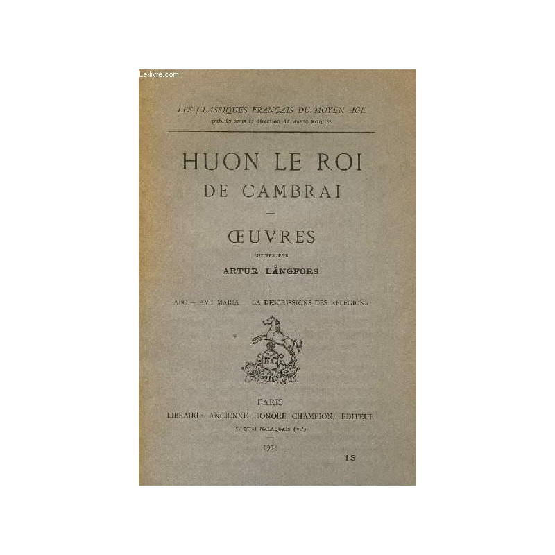 | Collection | CLASSIQUES FRANCAIS DU MOYEN AGE |