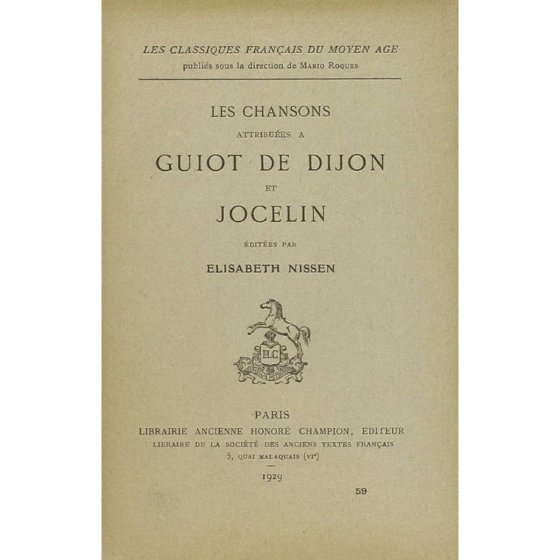 | Collection | CLASSIQUES FRANCAIS DU MOYEN AGE |