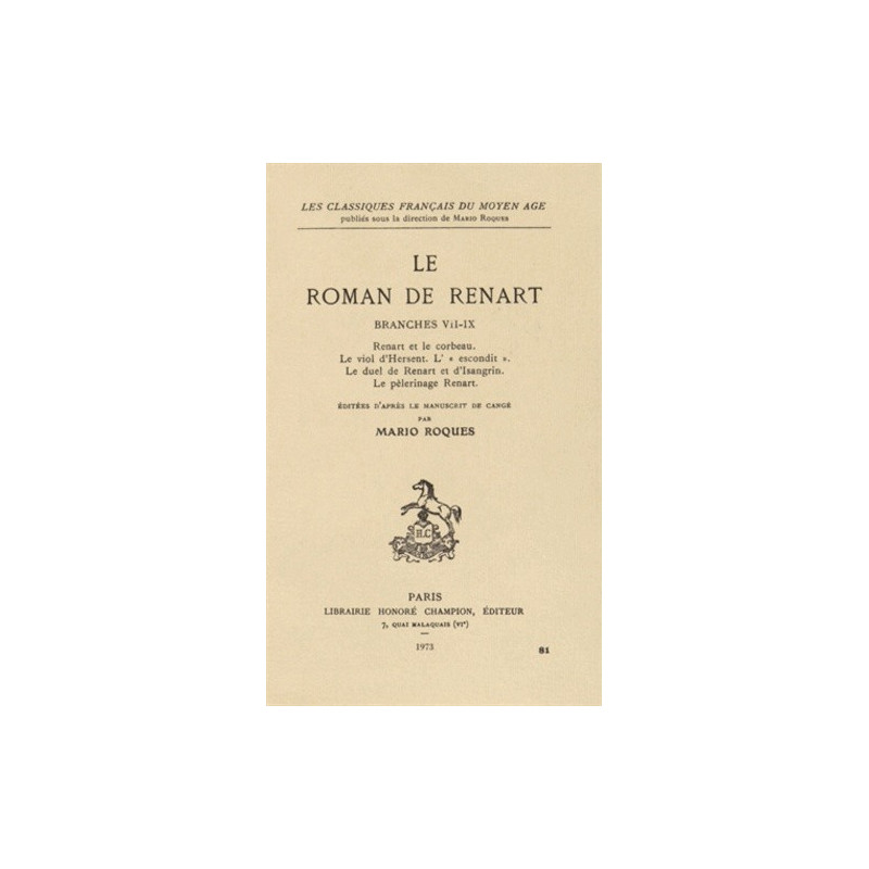 Le duel de Renart et d'Isengrin. Le pélerinage de Renart. Edité d'après le manuscrit de Cangé par Mario Roques (1953)