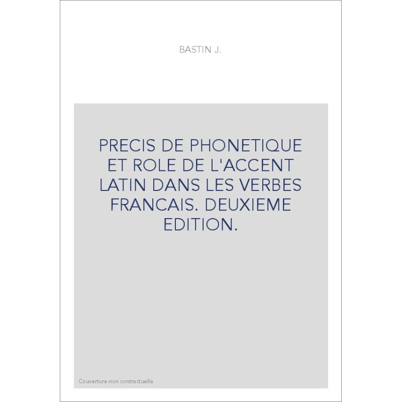 PRECIS DE PHONETIQUE ET ROLE DE L'ACCENT LATIN DANS LES VERBES FRANCAIS. DEUXIEME EDITION.