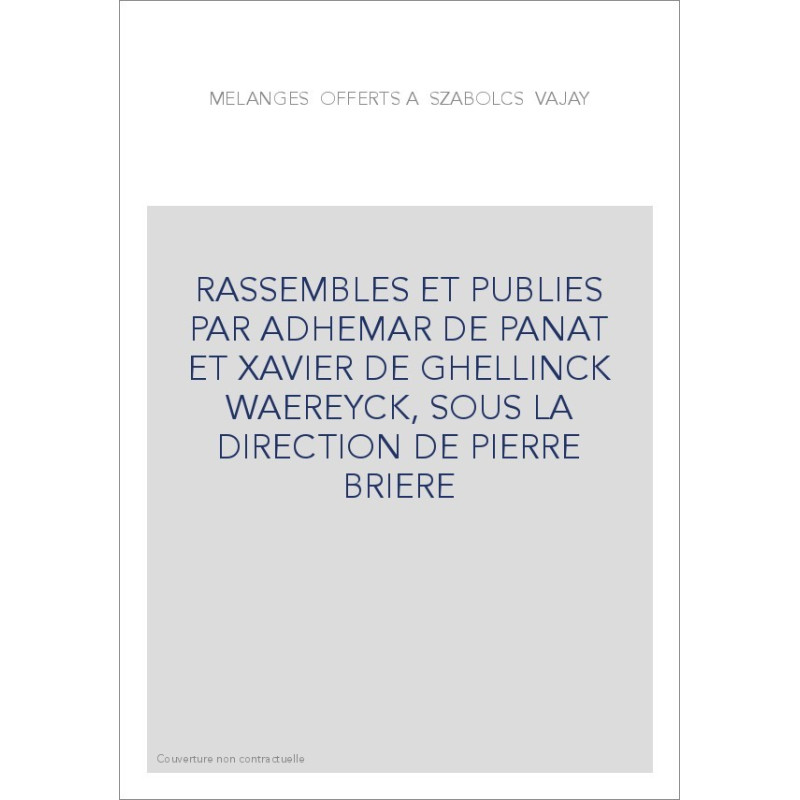 MELANGES OFFERTS A SZABOLCS VAJAY
