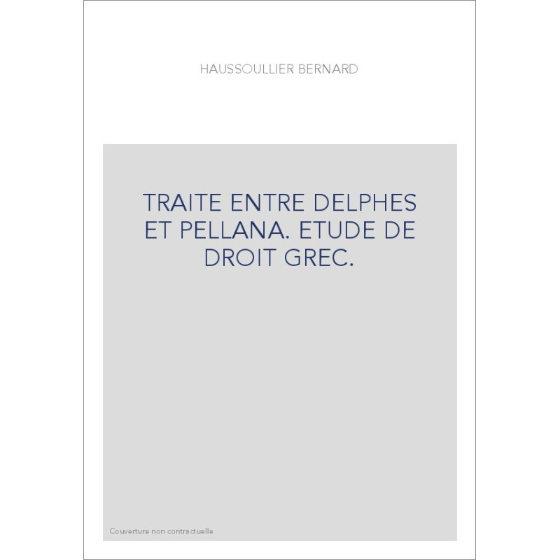 TRAITE ENTRE DELPHES ET PELLANA. ETUDE DE DROIT GREC. Agrandir