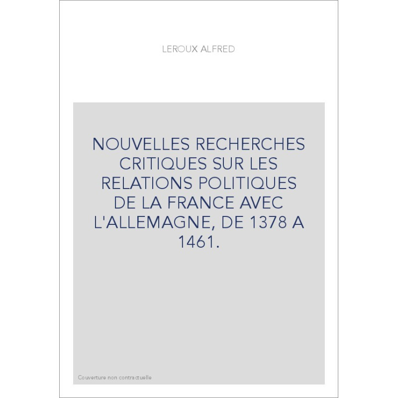 NOUVELLES RECHERCHES CRITIQUES SUR LES RELATIONS POLITIQUES DE LA FRANCE AVEC L'ALLEMAGNE, DE 1378 A 1461.