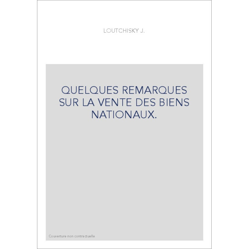 QUELQUES REMARQUES SUR LA VENTE DES BIENS NATIONAUX.