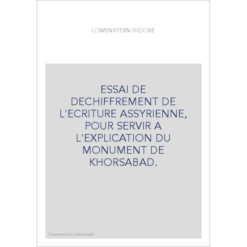 ESSAI DE DECHIFFREMENT DE L'ECRITURE ASSYRIENNE, POUR SERVIR A L'EXPLICATION DU MONUMENT DE KHORSABAD.