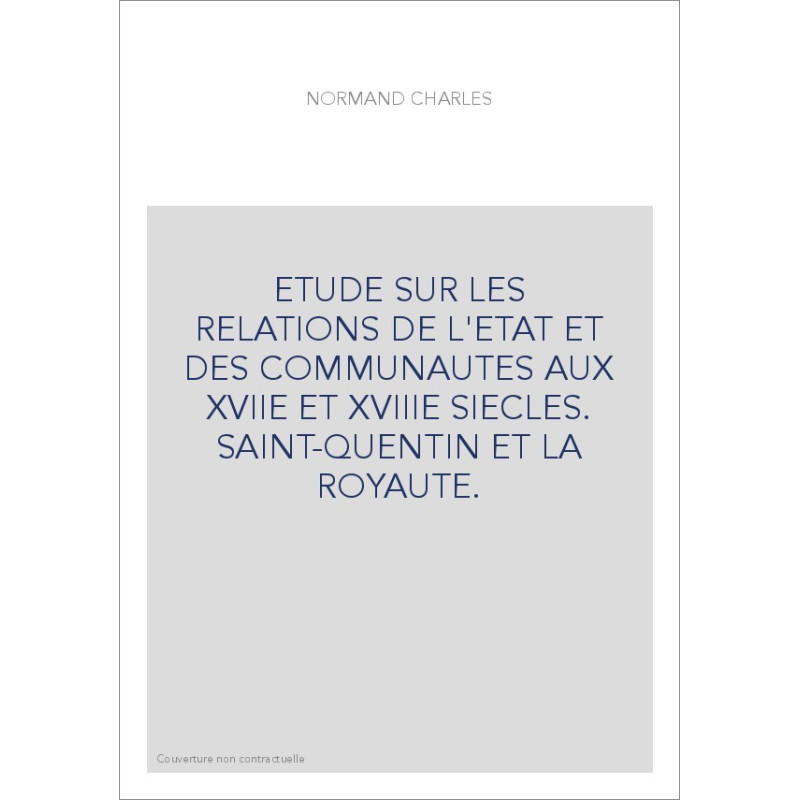 ETUDE SUR LES RELATIONS DE L'ETAT ET DES COMMUNAUTES AUX XVIIE ET XVIIIE SIECLES. SAINT-QUENTIN ET LA ROYAUTE.