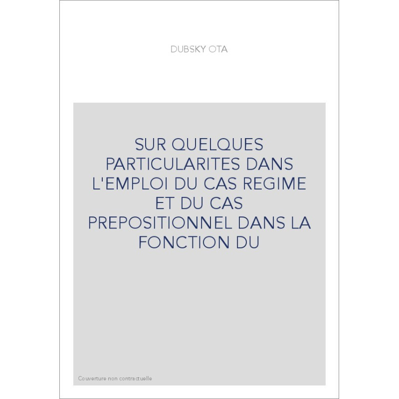 SUR QUELQUES PARTICULARITES DANS L'EMPLOI DU CAS REGIME ET DU CAS PREPOSITIONNEL DANS LA FONCTION DU