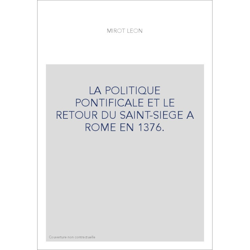 LA POLITIQUE PONTIFICALE ET LE RETOUR DU SAINT-SIEGE A ROME EN 1376.