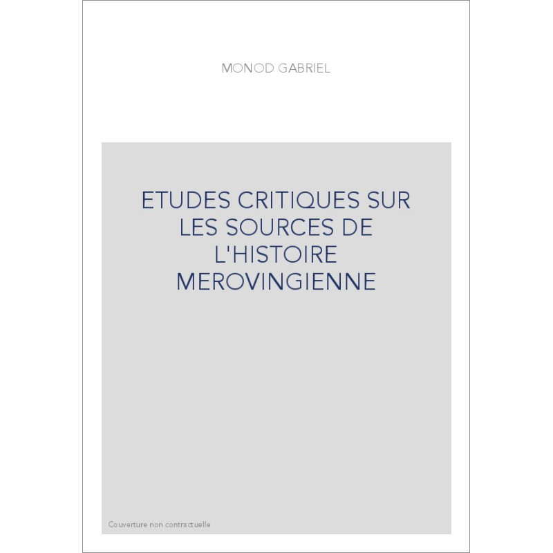 ETUDES CRITIQUES SUR LES SOURCES DE L'HISTOIRE MEROVINGIENNE