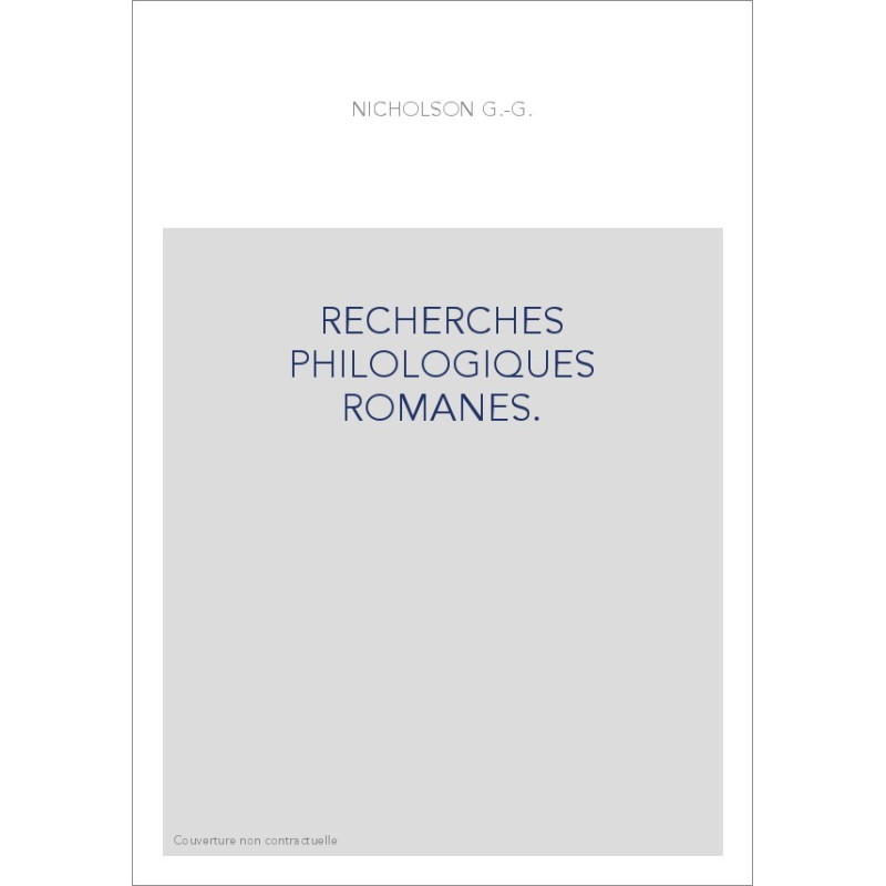 RECHERCHES PHILOLOGIQUES ROMANES. Agrandir
