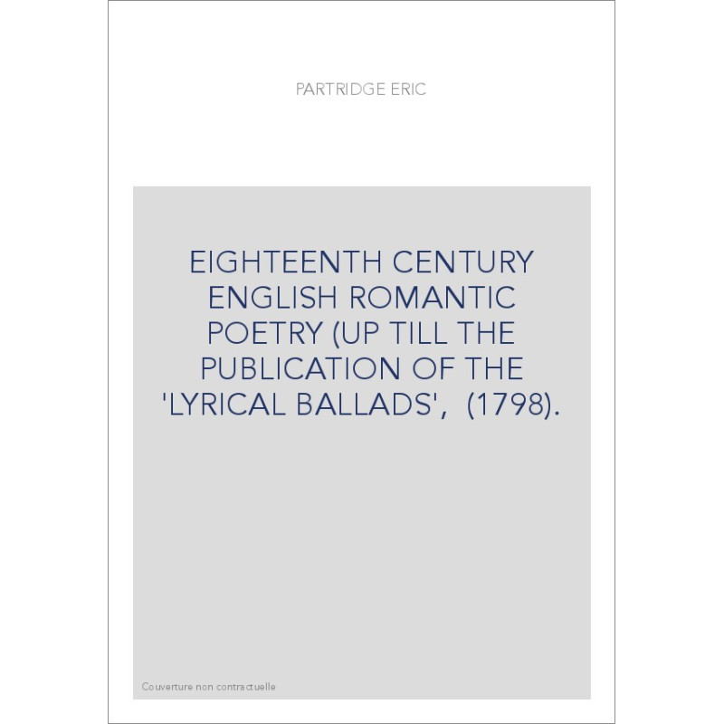 EIGHTEENTH CENTURY ENGLISH ROMANTIC POETRY (UP TILL THE PUBLICATION OF THE 'LYRICAL BALLADS',  (1798). Agrandir