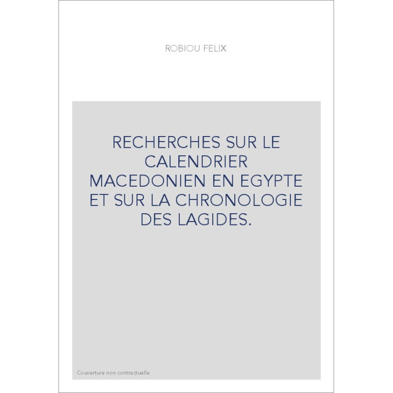 RECHERCHES SUR LE CALENDRIER MACEDONIEN EN EGYPTE ET SUR LA CHRONOLOGIE DES LAGIDES.