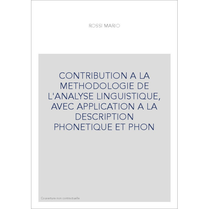 CONTRIBUTION A LA METHODOLOGIE DE L'ANALYSE LINGUISTIQUE, AVEC APPLICATION A LA DESCRIPTION PHONETIQUE ET PHON