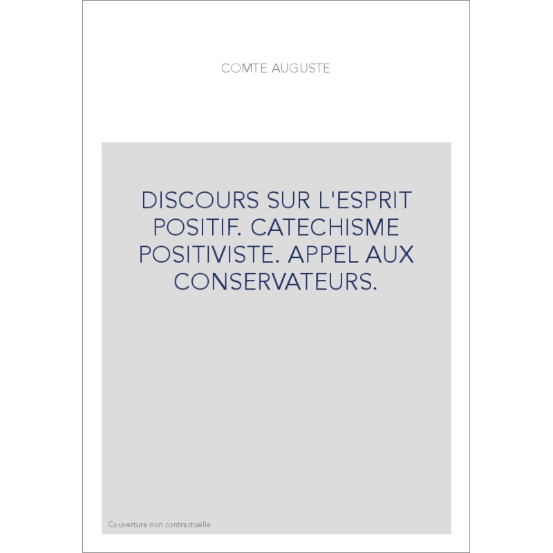 DISCOURS SUR L'ESPRIT POSITIF. CATECHISME POSITIVISTE. APPEL AUX CONSERVATEURS.