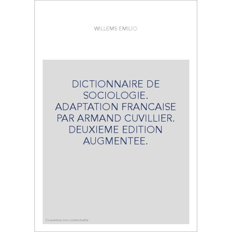DICTIONNAIRE DE SOCIOLOGIE. ADAPTATION FRANCAISE PAR ARMAND CUVILLIER. DEUXIEME EDITION AUGMENTEE.