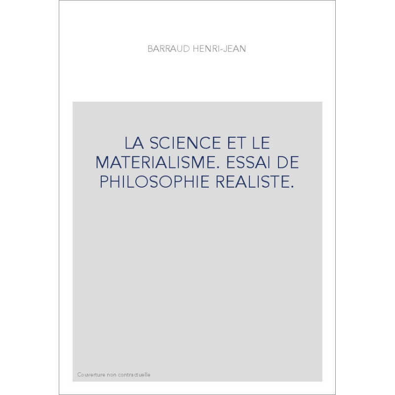 LA SCIENCE ET LE MATERIALISME. ESSAI DE PHILOSOPHIE REALISTE.