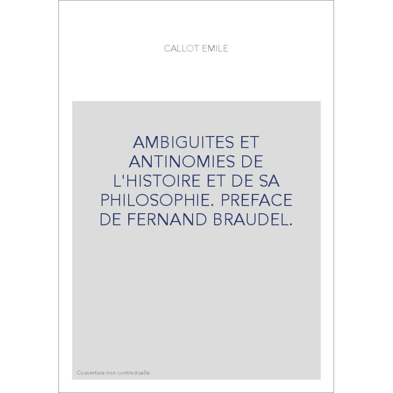 AMBIGUITES ET ANTINOMIES DE L'HISTOIRE ET DE SA PHILOSOPHIE. PREFACE DE FERNAND BRAUDEL.