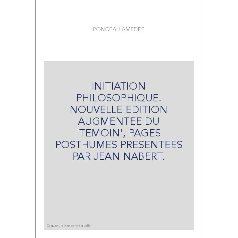 INITIATION PHILOSOPHIQUE. NOUVELLE EDITION AUGMENTEE DU 'TEMOIN', PAGES POSTHUMES PRESENTEES PAR JEAN NABERT.