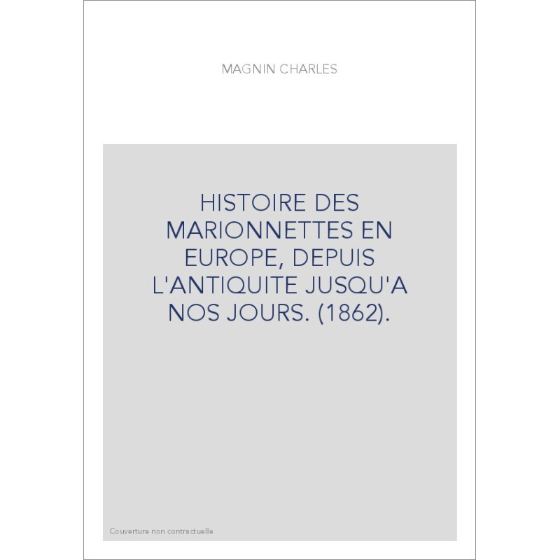 HISTOIRE DES MARIONNETTES EN EUROPE, DEPUIS L'ANTIQUITE JUSQU'A NOS JOURS. (1862).